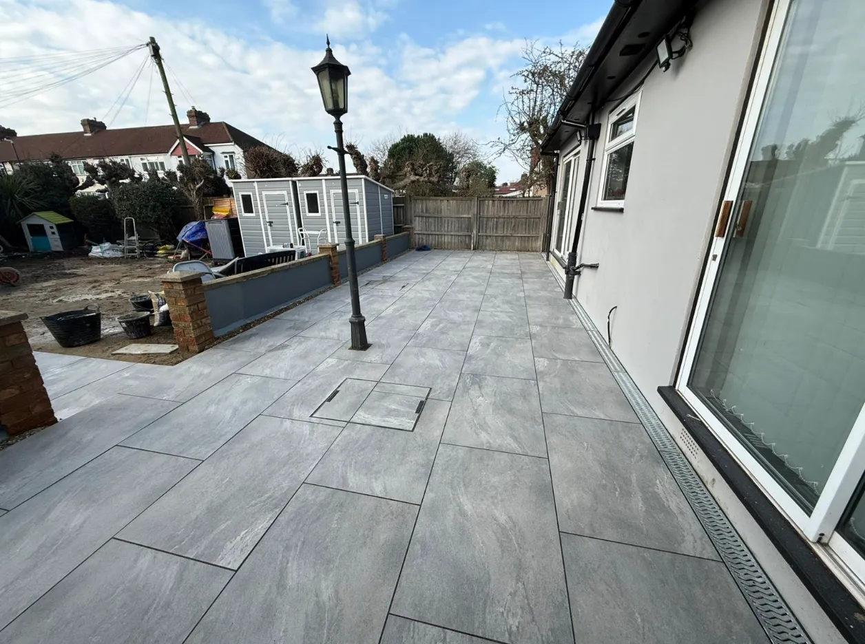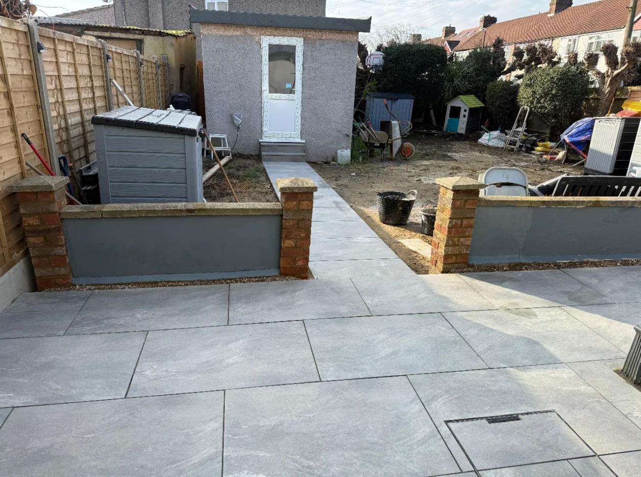 Valencia Grey Porcelain Patio, Brickwork & Jet Washing – Norbury Project